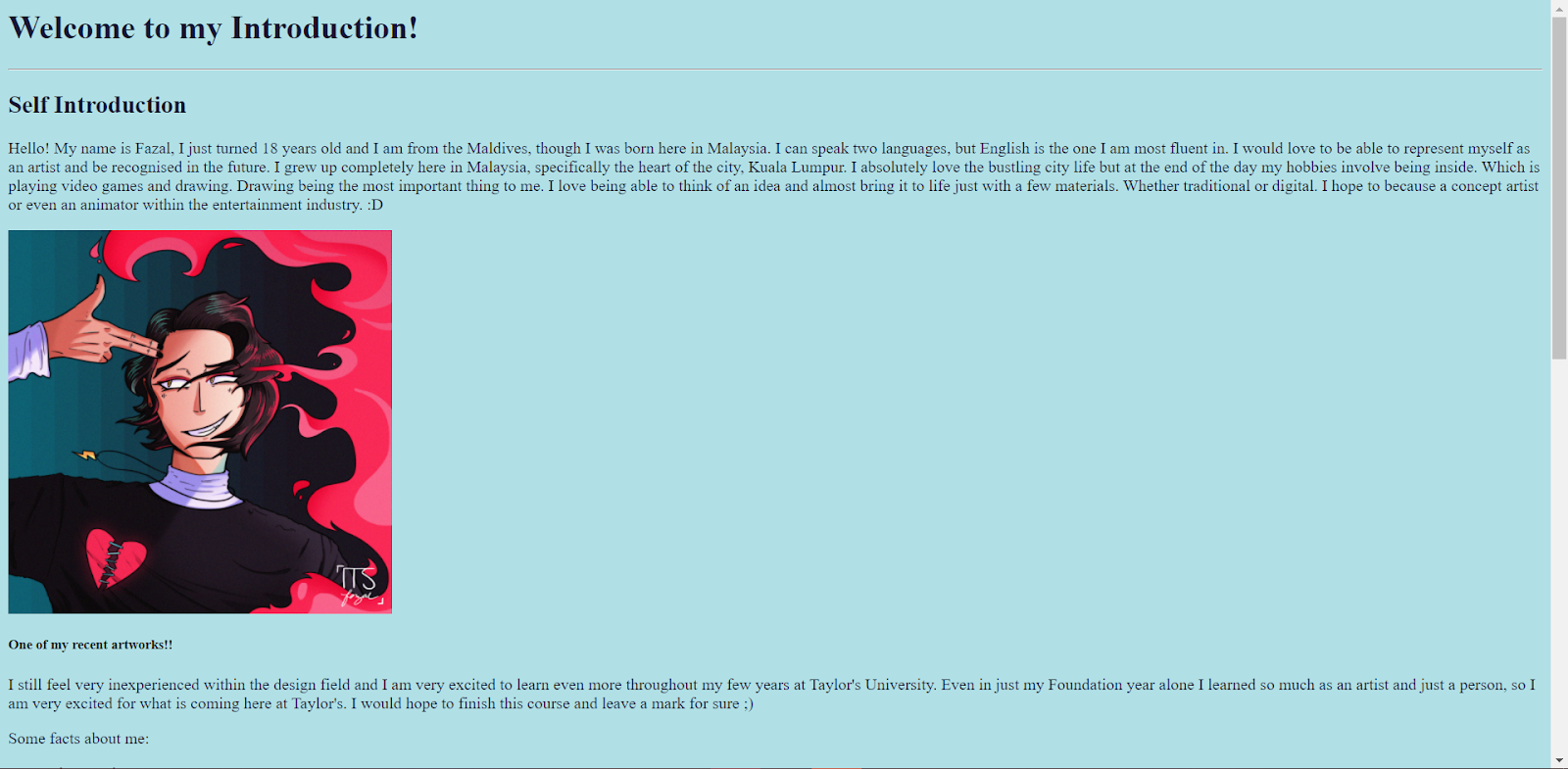 WEEK 2: For this weeks exercise, we have to create a self-introduction website through HTML with 3 sections. Our requirements are: